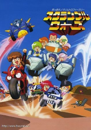 Junta los personajes de varios animes de ciencia ficción, un escenario similar a los carros locos, una demencia súper deformada y una completa aberración y entonces obtendrás Scramble Wars. A pesar que este anime incluye personajes originales de Bubblegum Crisis, Gall Force y Genesis Survivor Gaiarth, también tiene varios personajes de otros animes tales como AD Police y Riding Bean. No importa si amaste u odiaste algunas de estas series, mientras hayas visto al menos una de ellas pasaras un buen rato viendo esta, dado que la locura es tan general que no importara si viste alguno de los animes reflejados en Scramble Wars. No son los carros locos, pero anda bastante cerca. Genom está promocionando una carrera en la cual el ganador recibirá el Genom Trophy. Aparecen Priss con su Motoroid, Linna y Nene, Sylia y Mackie, un Boomer... ¿un Boomer?... vale... y personajes de otros animes. Competirán todos contra todos para ganar este prestigioso trofeo y harán cualquier cosa por tal de obtenerlo. |